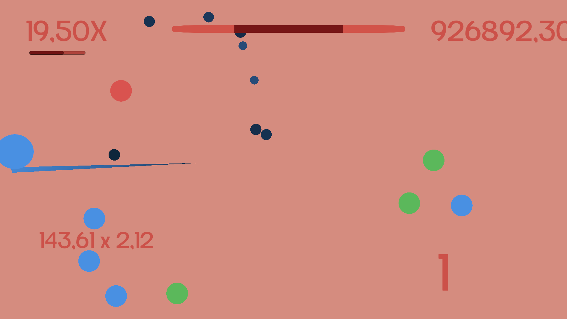 You have to match your ball's color with the collectible balls. After the collision you have to press Space to go to center then contunie to catching balls.